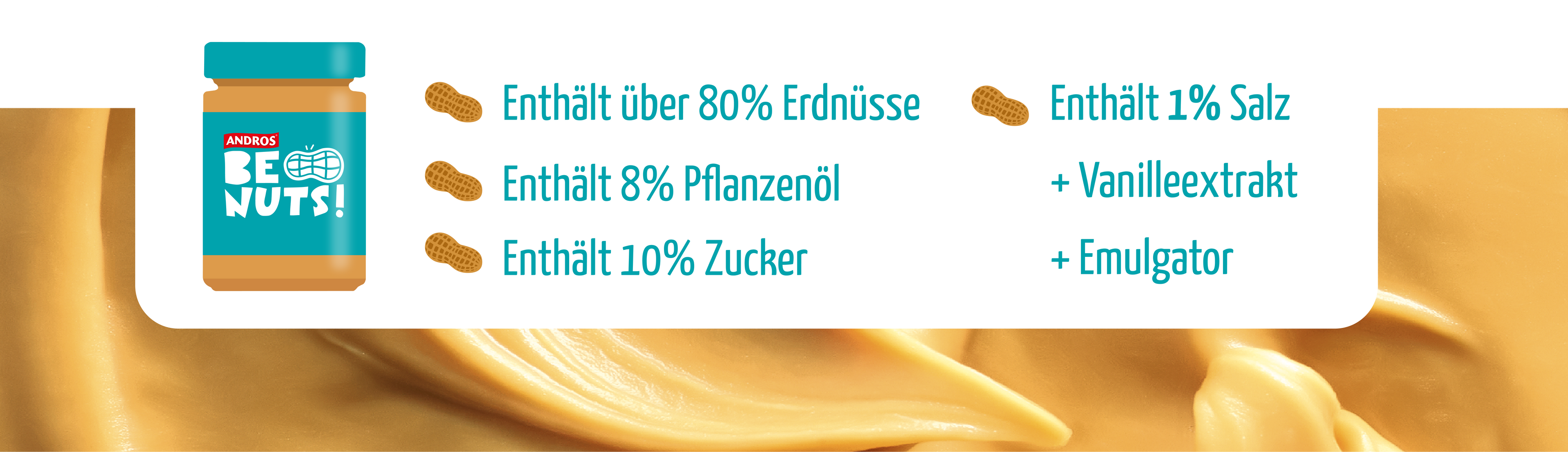 «Auf Toast, als Snack oder direkt vom Löffel, dieser Aufstrich ist vom ersten morgendlichen Craving bis zur späten nächtlichen Heißhungerattacke für dich da. Purer Genuss in jedem Bissen, wann immer du einen kleinen Boost brauchst.»